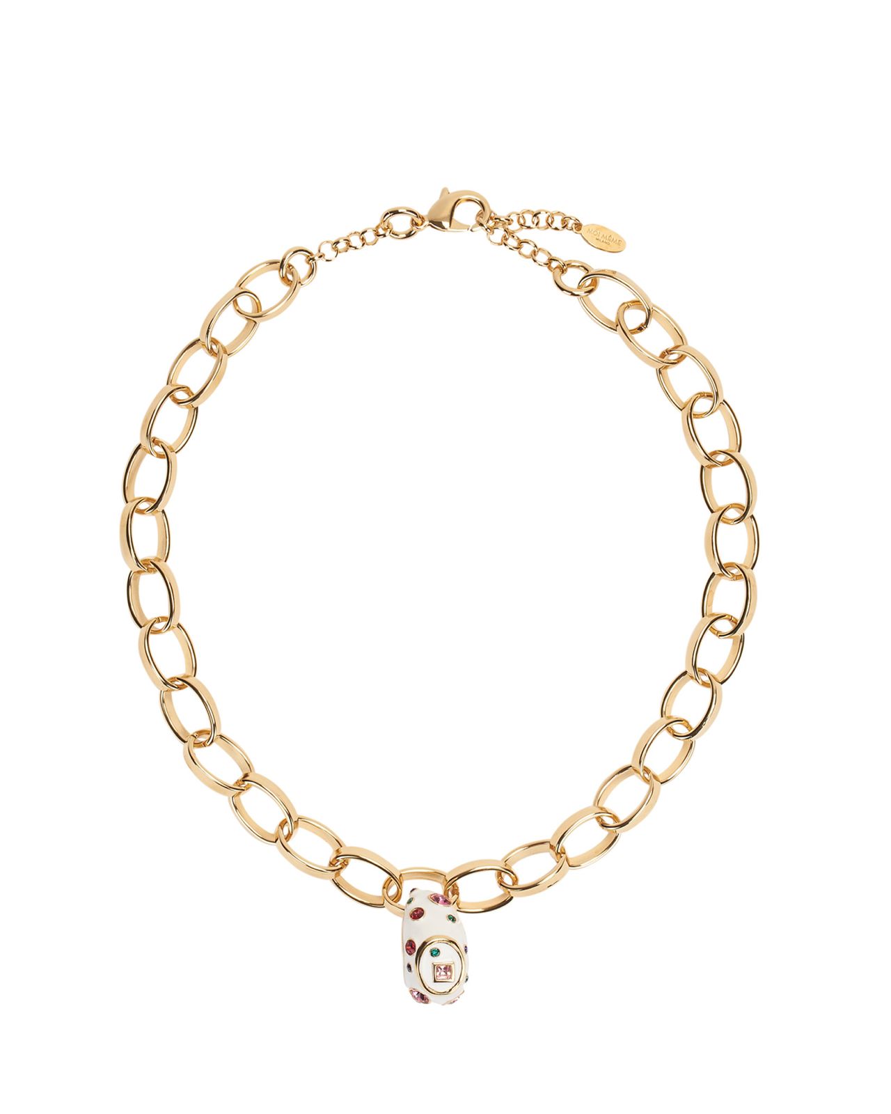 Realizzata con passione e precisione, la Collana a Catena con anello smaltato con cristalli dalle forme uniche e colori diversi è un gioiello delicato disegnato per una donna moderna con un approccio alla bellezza senza tempo.
